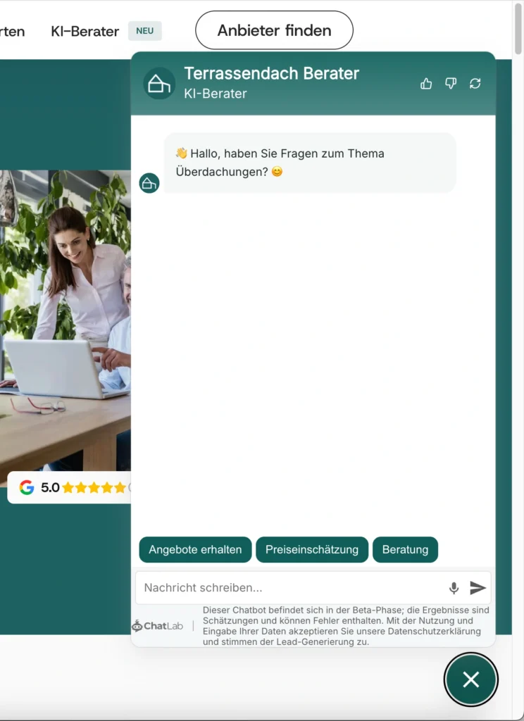 dass die Lead-Quote durch den Einsatz von ChatLab im Vergleich zu herkömmlichen Formularen um bis zu 45 % steigt. Warum? Weil der Nutzer sofortige Bestätigung erhält und das Gefühl hat, bereits in einem Beratungsprozess zu sein, anstatt nur Daten in ein schwarzes Loch zu senden.
